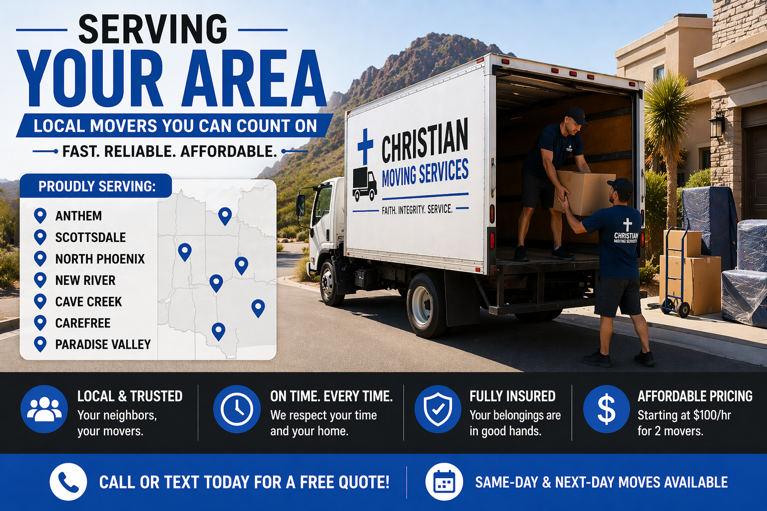 Looking for reliable movers near you? Christian Junk Removal now offers professional moving services for homes, apartments, and small jobs across North Scottsdale and surrounding areas.